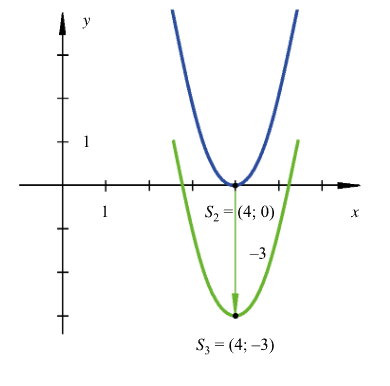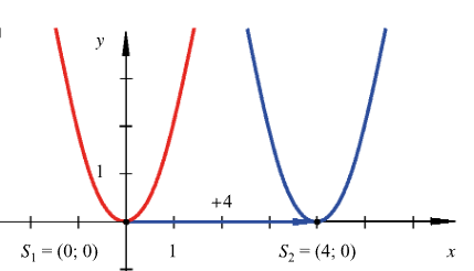 Wenn wir also die Parabel um 4 stellen nach rechts verschieben wollen, setzen wir als Ursprung in der Formel ein und erhalten:
